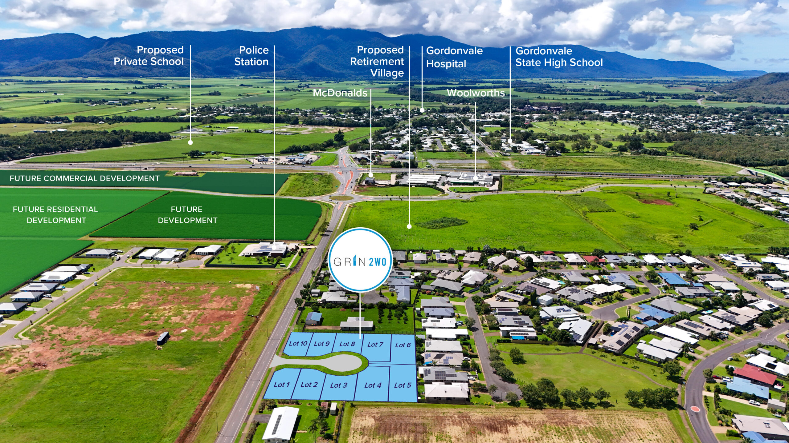GRIN 2WO is in Gordonvale, a suburb where life feels unhurried and familiar faces aren’t hard to find. Schools, shops and daily comforts are close at hand, while Cairns is just a short drive away.